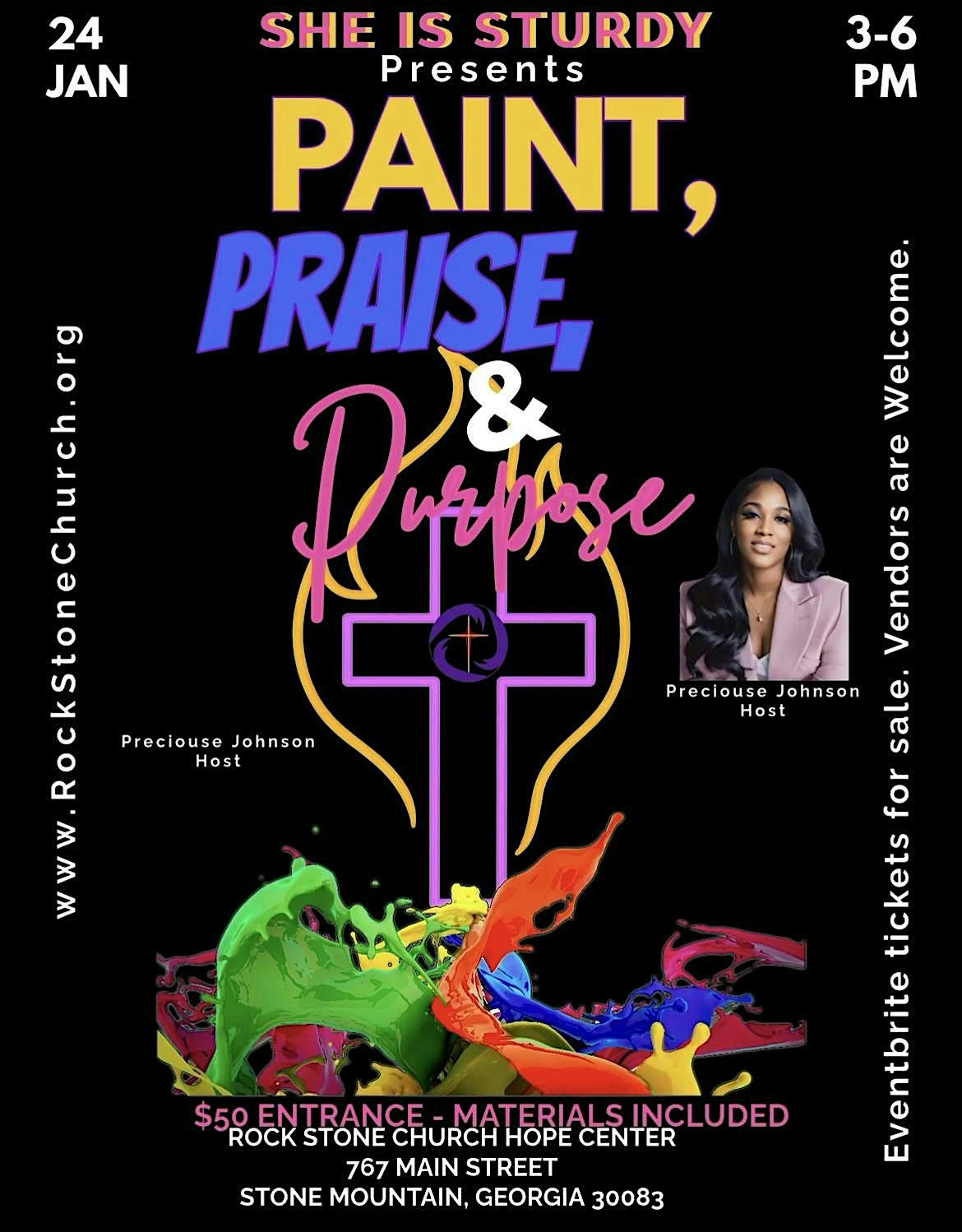 Join us for an inspiring Paint & Praise experience filled with creativity, fellowship, and spiritual upliftment. Guests will receive their own paint kits and enjoy a relaxed atmosphere with delicious finger foods and refreshing beverages.