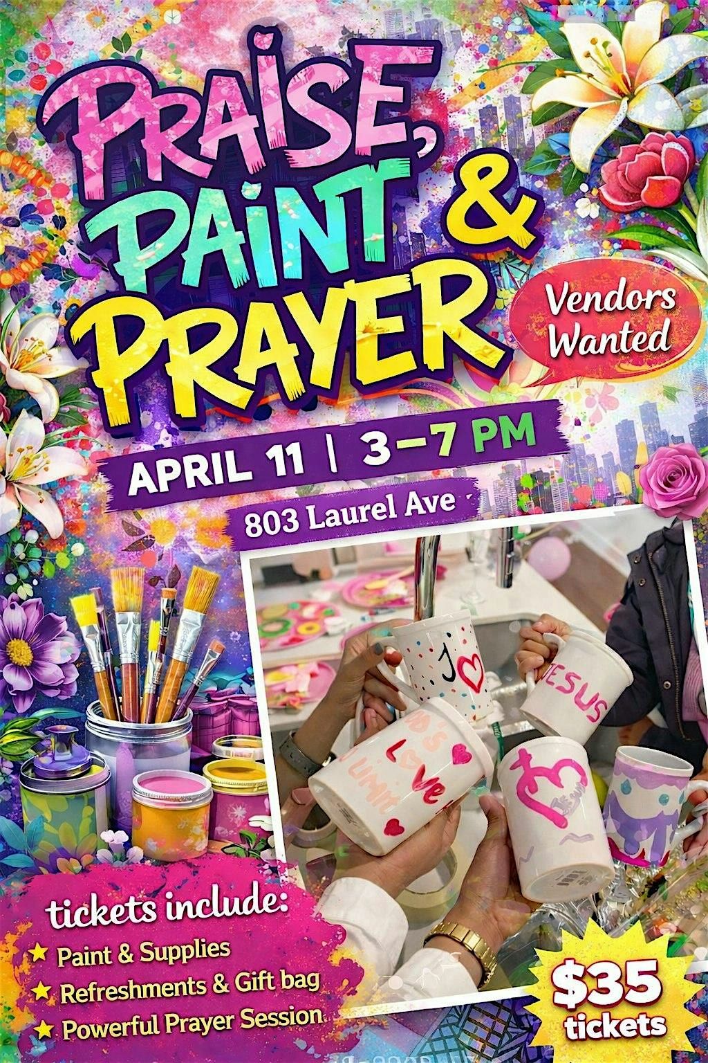 Join us for Praise, Paint & Prayer β an afternoon full of creativity, laughter, and powerful prayer.
