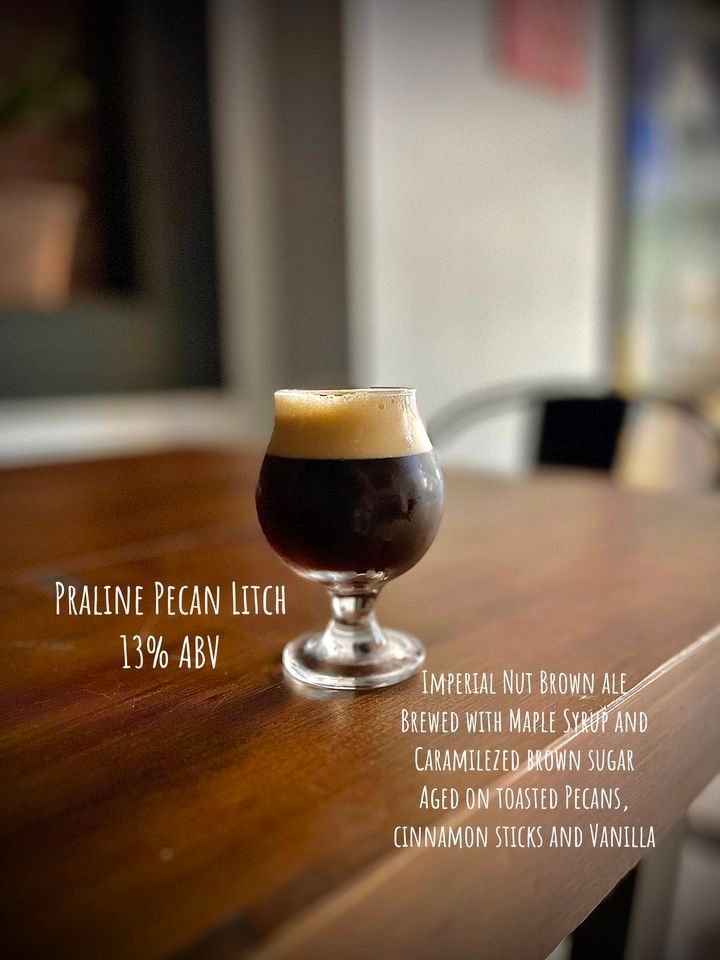 Our Imperial Nut Brown Ale, brewed with caramelized brown sugar and maple syrup, aged on toasted pecans, cinnamon sticks and vanilla. 13% ABV!