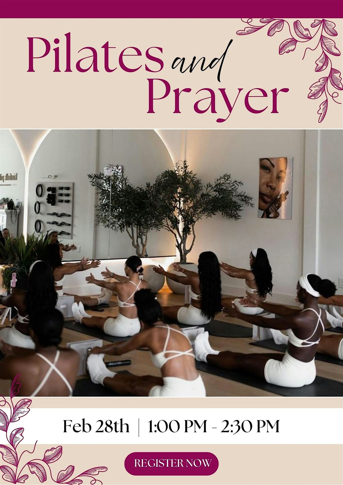 Looking for a unique way to refresh your body and soul? Come experience our Prayer and Pilates session in person! It’s the perfect blend of mindful movement and spiritual connection. Whether you’re a seasoned pilates fan or just curious, this event is all about good vibes, gentle stretches, and heartfelt prayer let’s flow together!