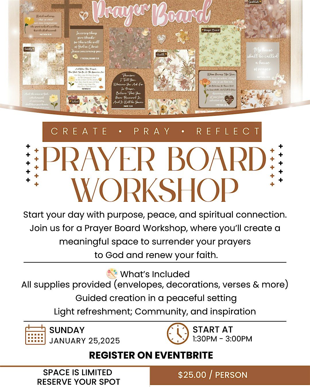 Whether you’re new to prayer boards or already journaling your faith journey, this workshop is for you.