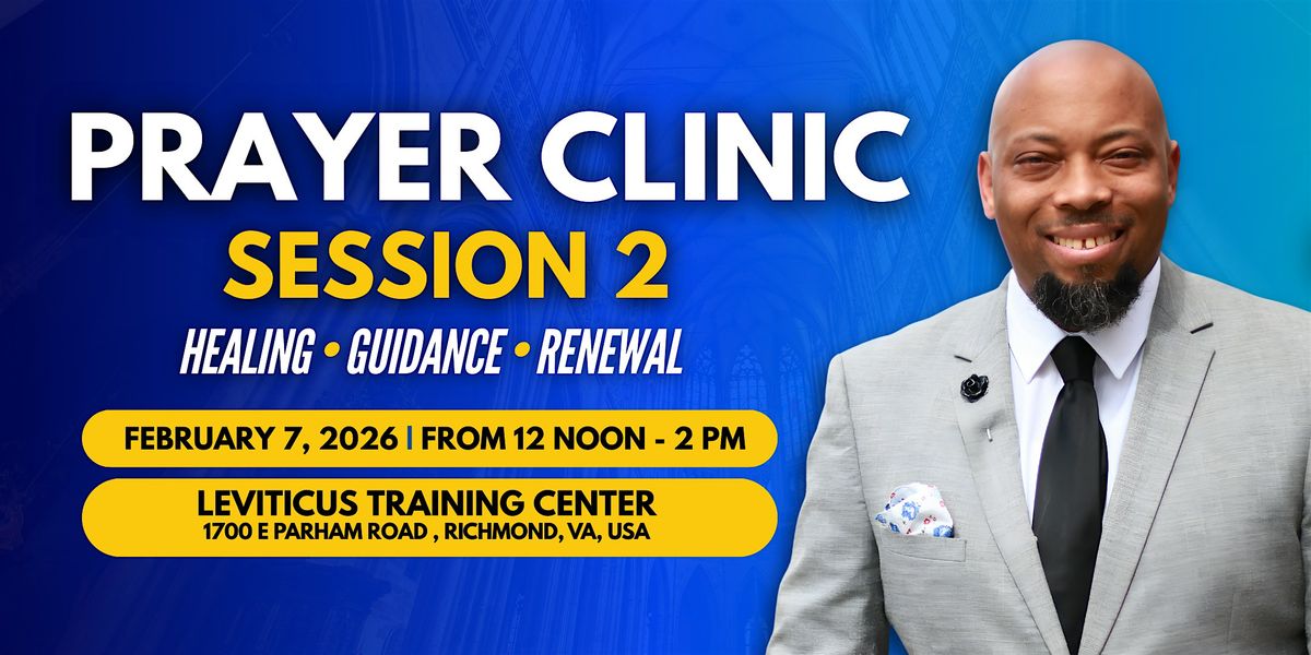 Welcome to the 2nd Prayer Clinic Session at Leviticus RVA Church! Join us on February 7, 2026 at 12:00 PM for a time of spiritual renewal and connection with the divine. Whether you're seeking guidance, healing, or simply a moment of peace, this event is open to all. Come as you are and experience the power of collective prayer and positive energy. Let's come together and uplift each other in faith and love. We can't wait to see you there!