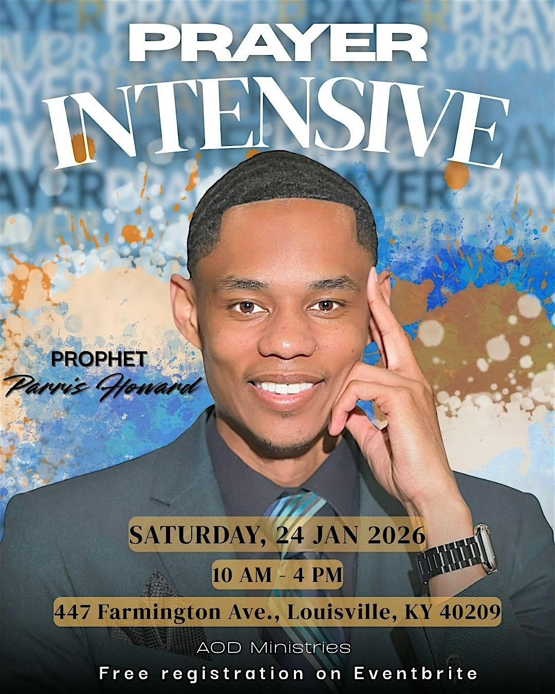 AOD Ministries is thrilled to host this Prayer Intensive with Prophet Parris Howard! Join us on Saturday, January 24, 2026, for a day that promises to be absolutely life changing.