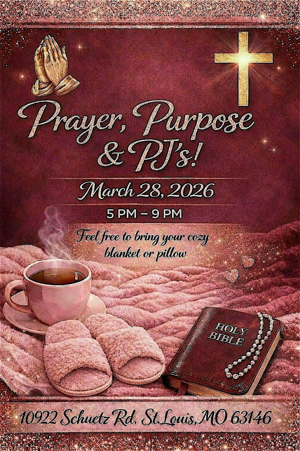 Step into a peaceful, cozy atmosphere where faith meets rest. Prayer, Purpose & PJs is an intimate worship and prayer experience.