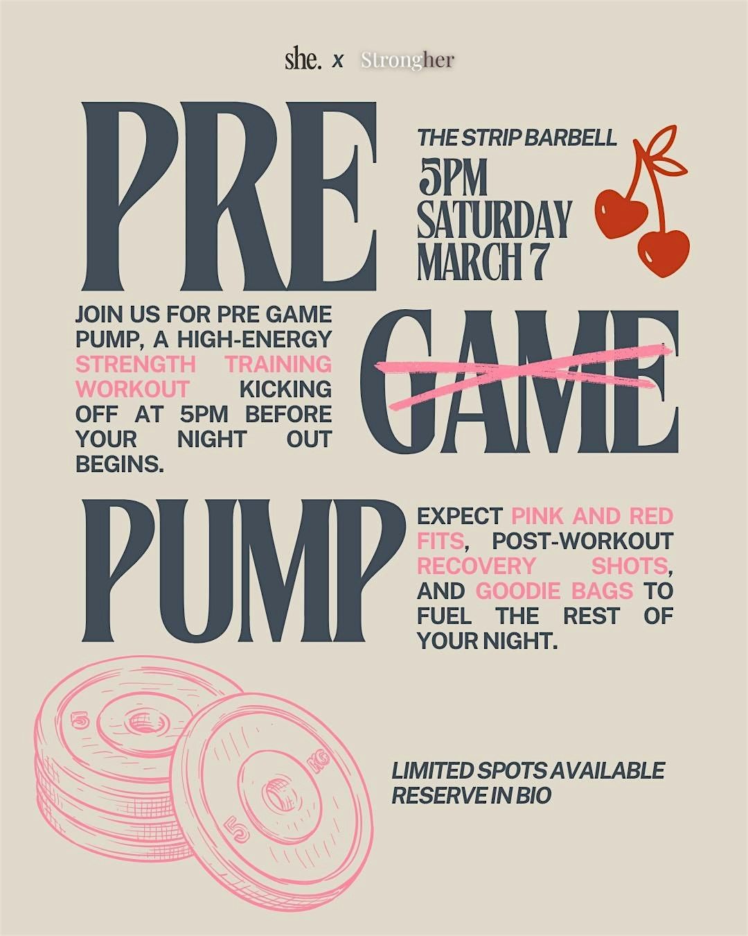 Join us Saturday, March 7th at 5PM at The Strip Barbell for our Pre Game Pump — a 1-hour strength session designed to get you strong, sweaty, and hyped before your night even begins.