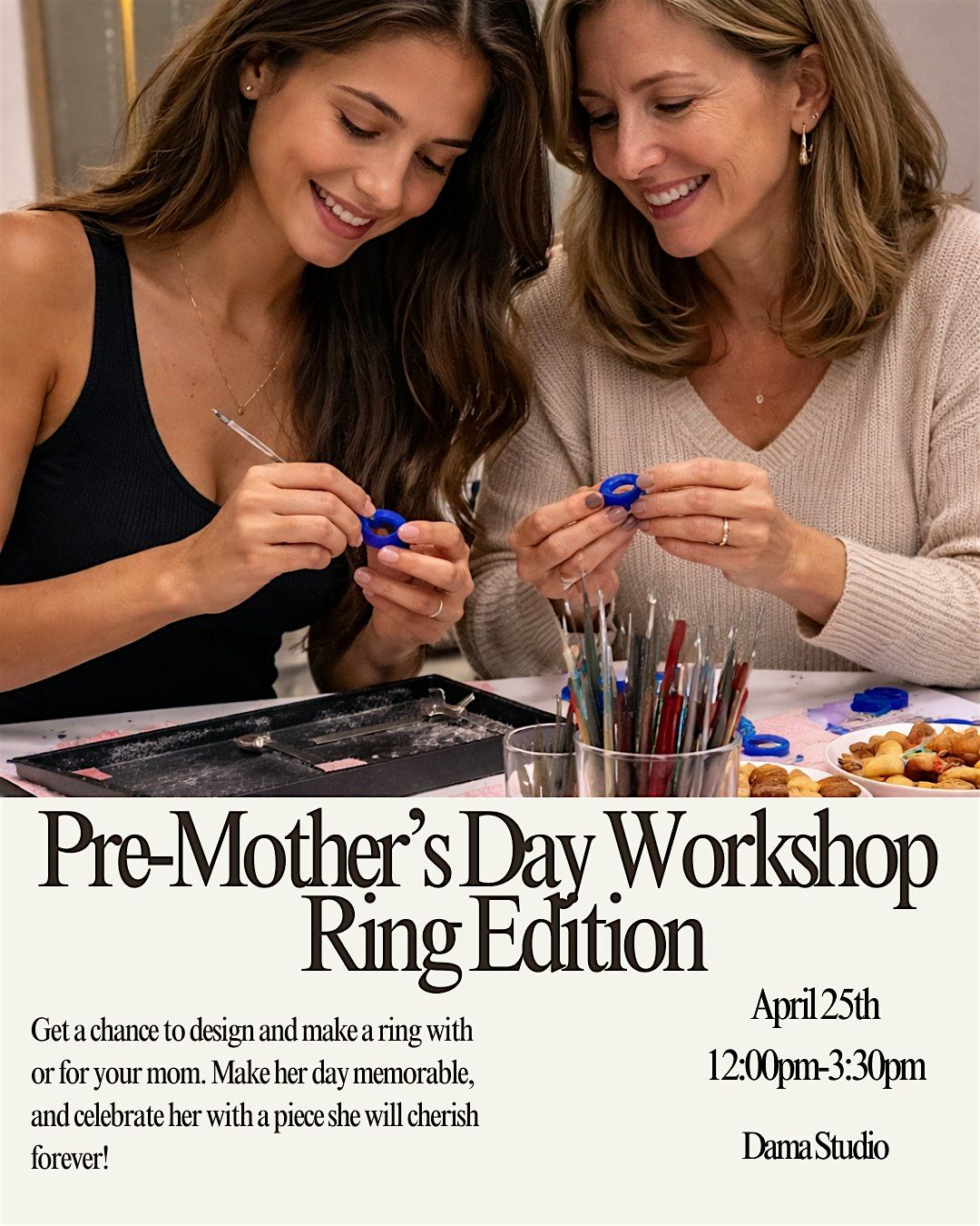 Join us for a hands-on experience in the art of wax carving and jewelry design!The perfect idea to make a special gift for your mom, or even better make it with her!