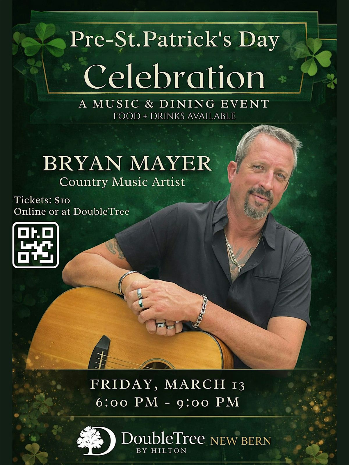 Join us for a refined early St. Patrick’s weekend gathering featuring Bryan Mayer, solo musical artist, for an intimate evening of live music in an elegant setting.