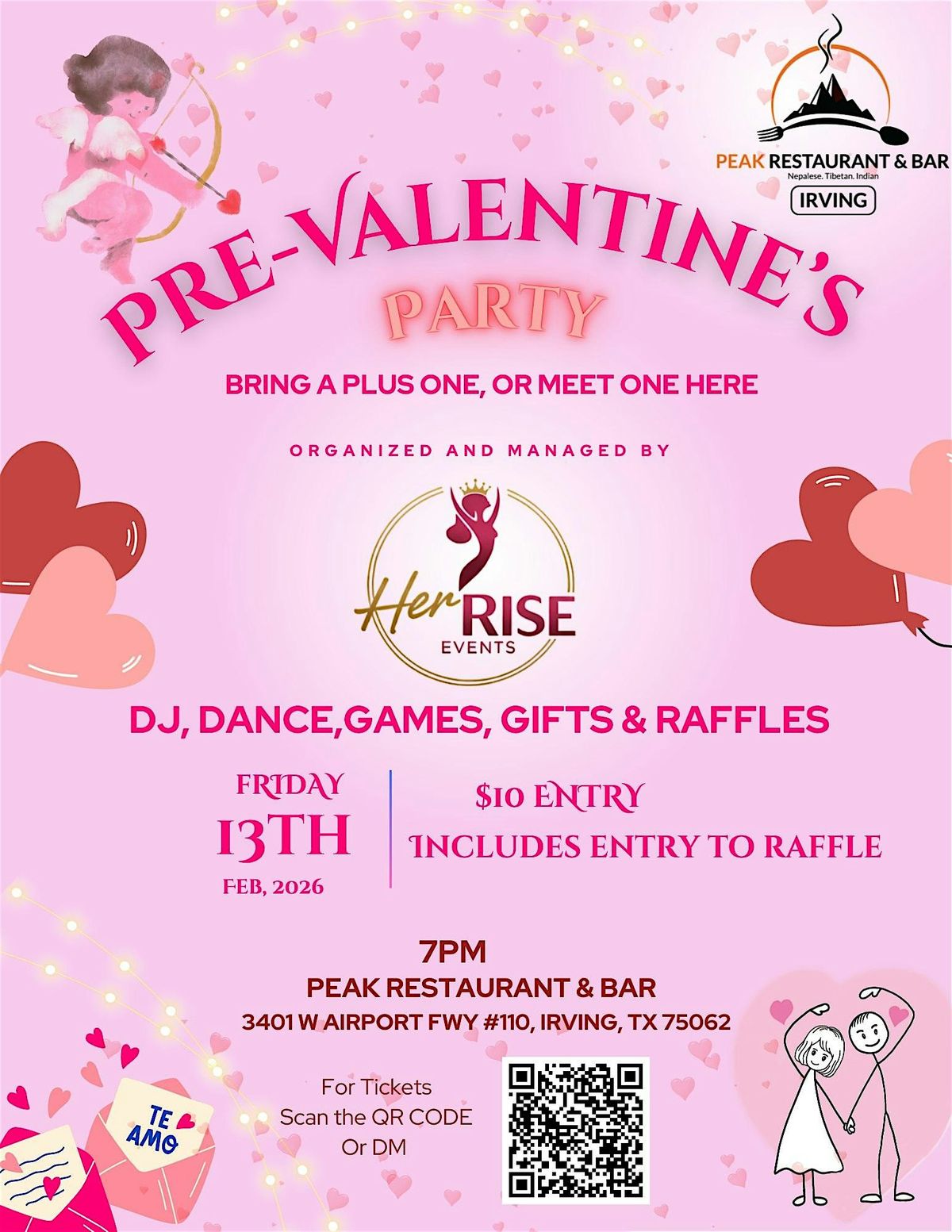 Join us for an awesome in-person celebration to kick off the love season early! Expect cool vibes, fun games, and great company. Whether you're flying solo or bringing your favorite person, this party’s all about good times and happy hearts. Don’t miss out on the chance to mingle, laugh, and maybe even find your Valentine!