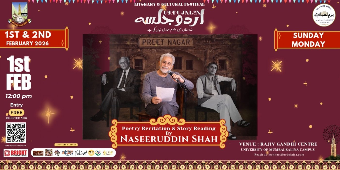 Experience the magic of storytelling "Preet Nagar By Naseeruddin Shah" At Urdu Jalsa 2026 A Mumbai Litrary & Cultural Festival presented by Dept Of Urdu, University of Mumbai & Bazm E Ahbab Foundation.