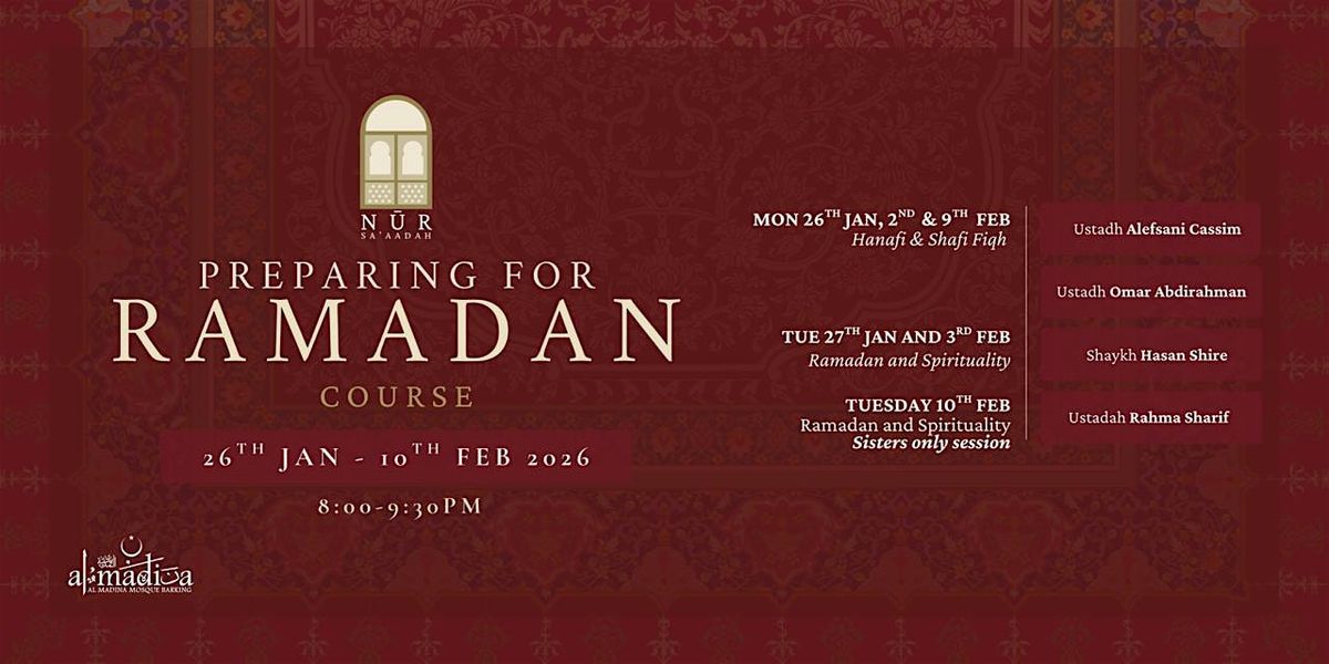 Tuesdays (27th Jan, 3rd Feb): Preparing Our Hearts for Ramadan: Ramadan & Spirituality