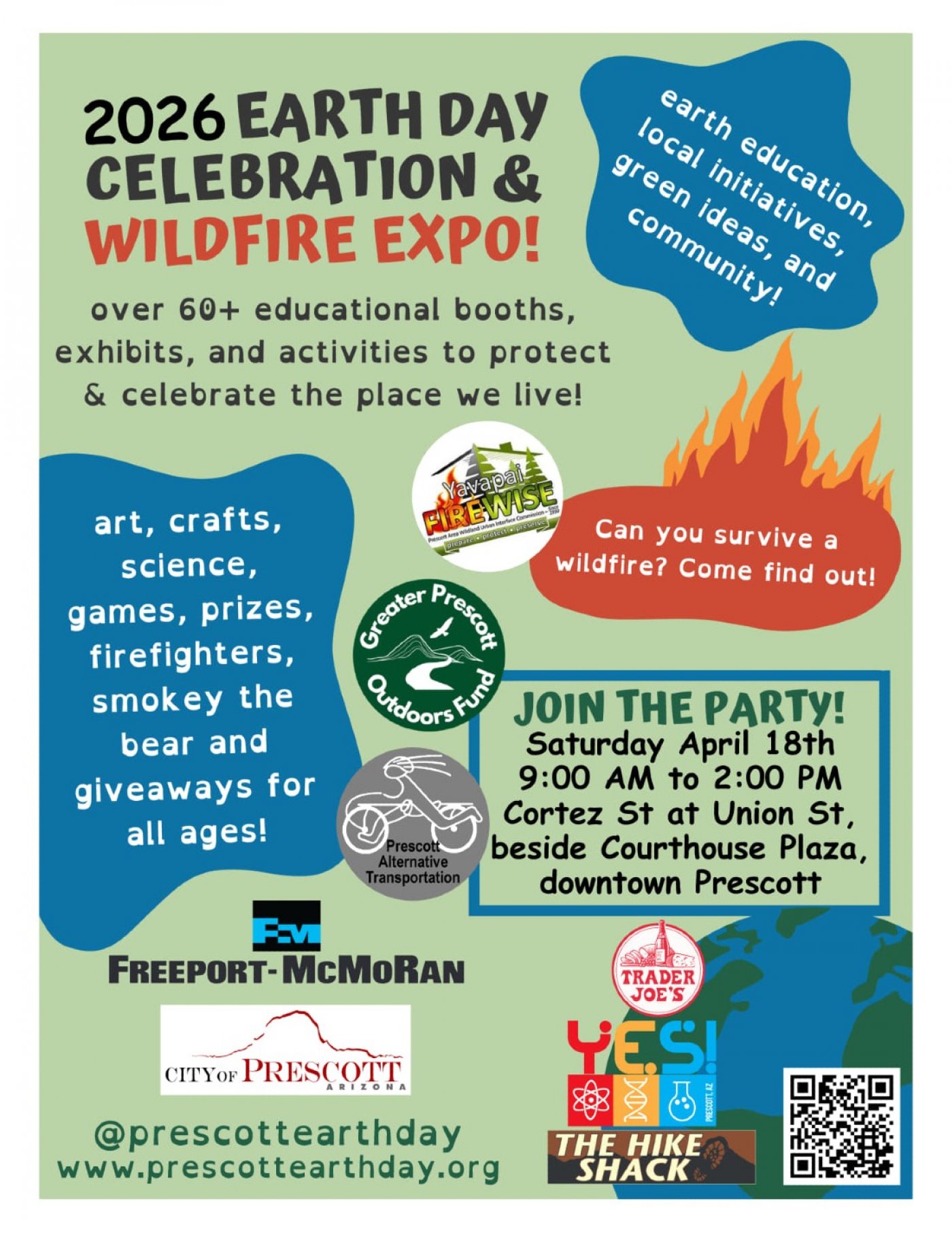 Join Prescott’s Earth Day Celebration on Saturday, April 18th from 9am to 2pm, beside the Courthouse Plaza. Visit over 60 education booths. Loads of fun for the kids and the whole family -art, games, crafts, prizes and giveaways! Drop by the Prescottwater.com booth and celebrate Water Awareness Month with us too!