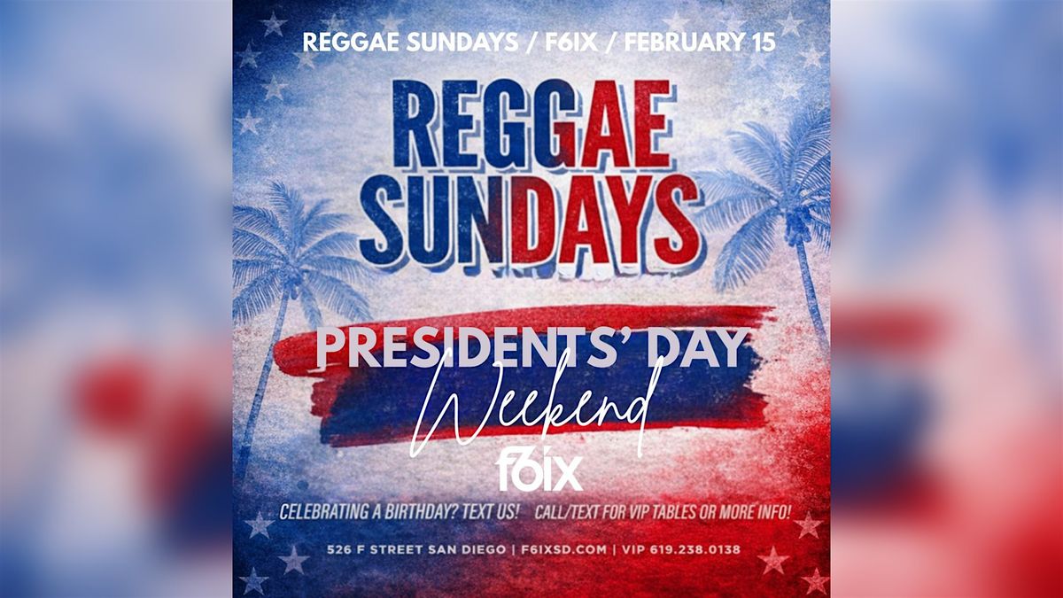 PRESIDENTS' DAY WEEKEND AT F6IX: REGGAE SUNDAYS | FEBRUARY 15TH EVENT