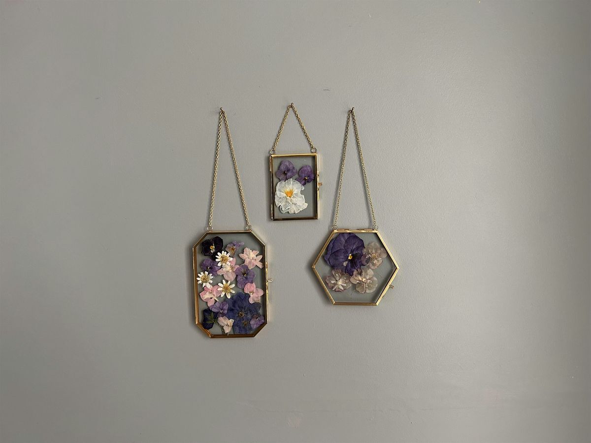 Each participant will receive: • One large hanging glass frame • One ornament-sized frame • Access to a tray of farm-grown pressed flowers to design your pieces • A decadent refreshment table to enjoy while you create