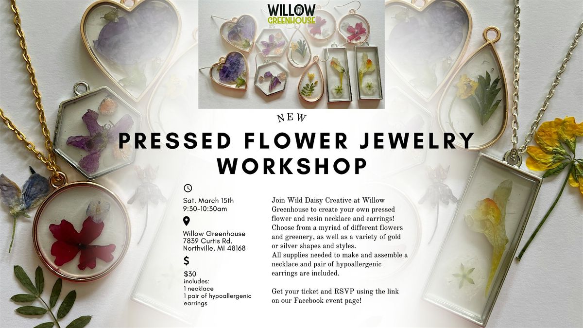 Join Wild Daisy Creative at Willow Greenhouse to create your own pressed flower and resin necklace and earrings!