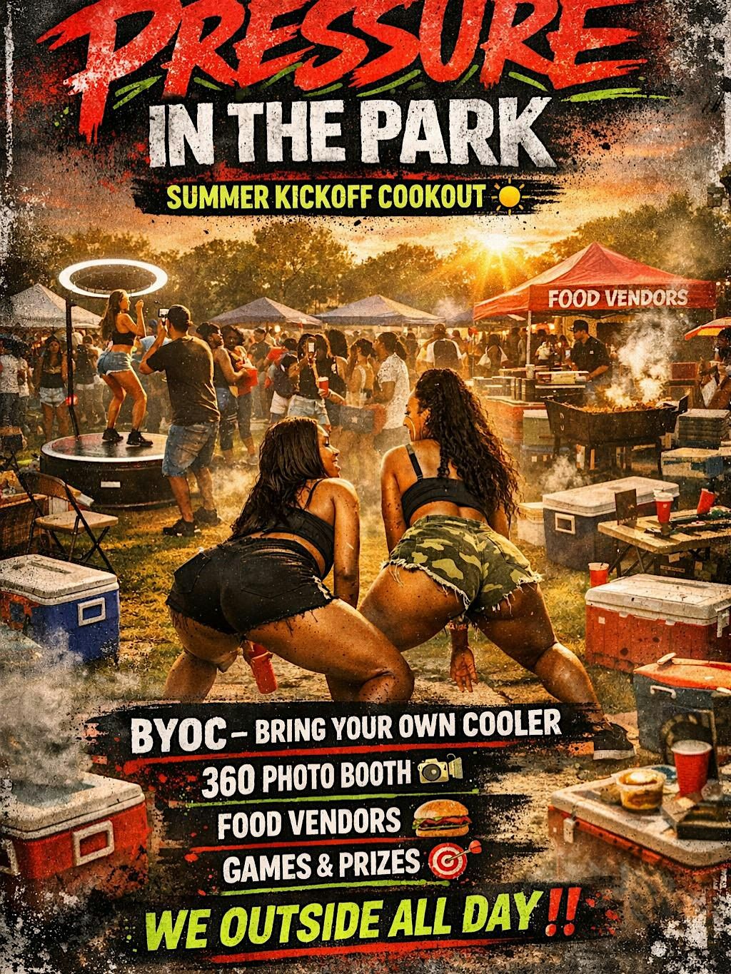 Pressure in the Park is a high-energy outdoor day party bringing music, good vibes, and community together for an unforgettable experience. Enjoy live DJs, food vendors, games, contests, and a lively atmosphere all day long.
