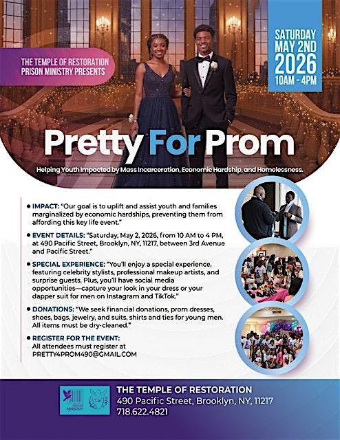 Hey there! Join us in person for PRETTY 4 PROM, where the glam vibes are real and the fun never stops. Whether you're hunting for the perfect dress, dazzling makeup tips, or just want to hang with friends before the big night, this is the place to be. Gentlemen, we have suits, ties and shoes for you too! Don't miss out on the ultimate pre-prom experience—let's make those memories sparkle!
