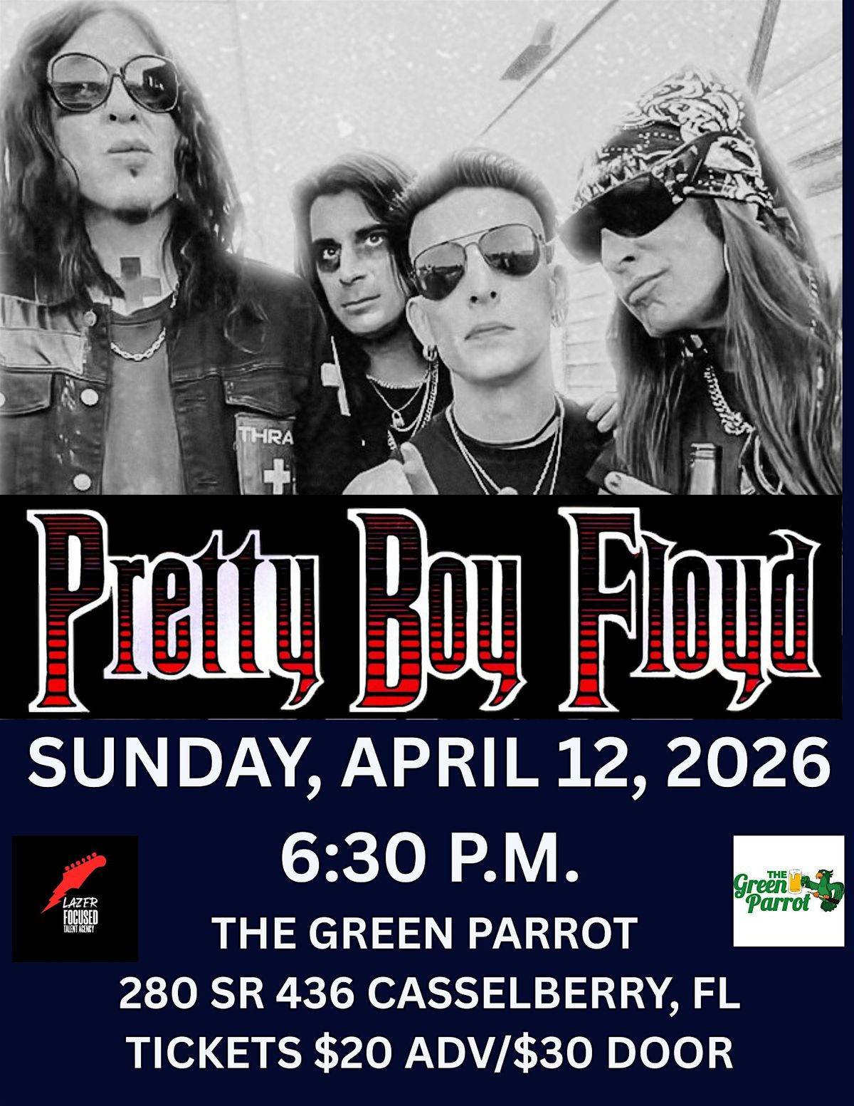 Don't miss the debut of PRETTY BOY FLOYD at The Green Parrot in Casselberry performing all of their hits! Get ready for a night filled with amazing music and great vibes on April 12, 2026 at 6:30 PM (Eastern Time). Join us for an unforgettable experience as we rock out to some fantastic tunes. Don't miss out on this epic event! AMAZING SUNDAY FUNDAY with PRETTY BOY FLOYD rock show! LIVE IN PERSON! ONE NIGHT ONLY!