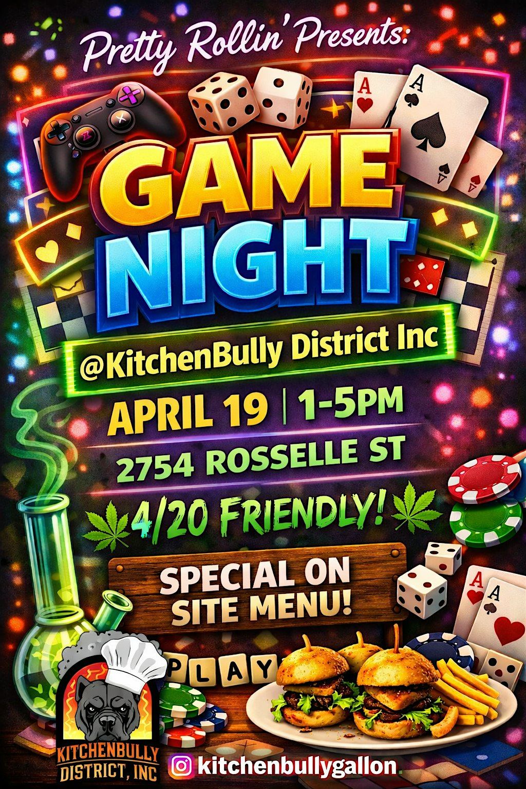 Pretty Rollin presents Game Night at KitchenBully District Inc on April 19, from 1–5pm.