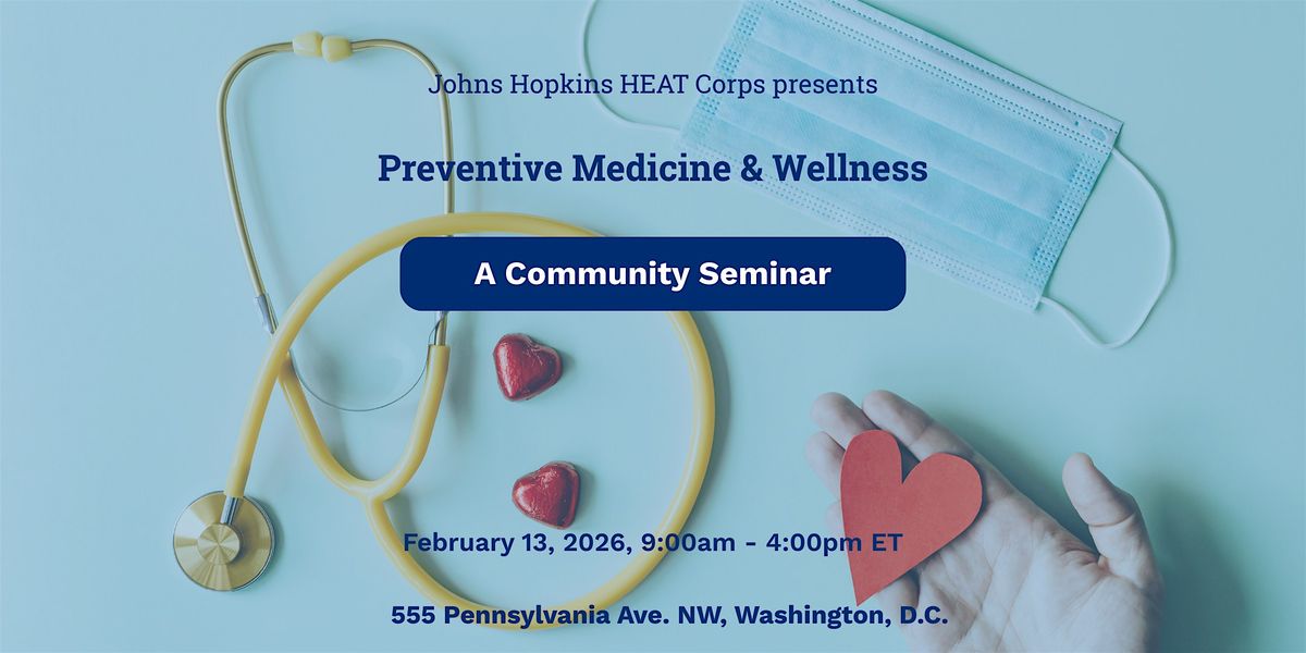 The Johns Hopkins Health Education and Training (HEAT) Corps is hosting “Preventive Medicine & Wellness,” an in-person seminar, on February 13th at the Bloomberg Center in Washington, D.C. from 9 am – 4 pm. It will be held at 555 Pennsylvania Avenue NW, Washington D.C. and feature a keynote, a response panel, a presentation from a local representative and time for participants to collaborate in small work groups. This event will provide policy experts, community stakeholders, and school leaders the opportunity to collaborate to understand each other’s perspectives and develop solutions for an important health concern.