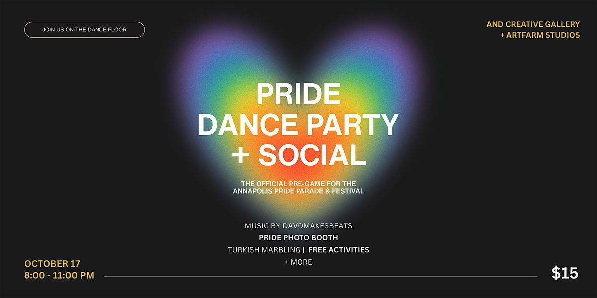 Kick off Annapolis Pride in style! 🎉 AND Creative Gallery and ArtFarm Studios are teaming up to host the official pre-game for the rescheduled Annapolis Pride Parade & Festival.