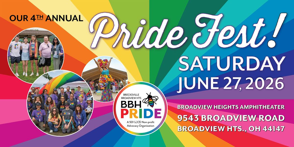 Get ready for Pride Fest 2026! Join us for our 4th Annual event - a very special day filled with pride, celebration, and community at the Broadview Heights City Campus & Amphitheater. Get ready for an exciting lineup of live music, food vendors, arts & crafts vendors, games, and entertainment that will make this yet another memorable event!