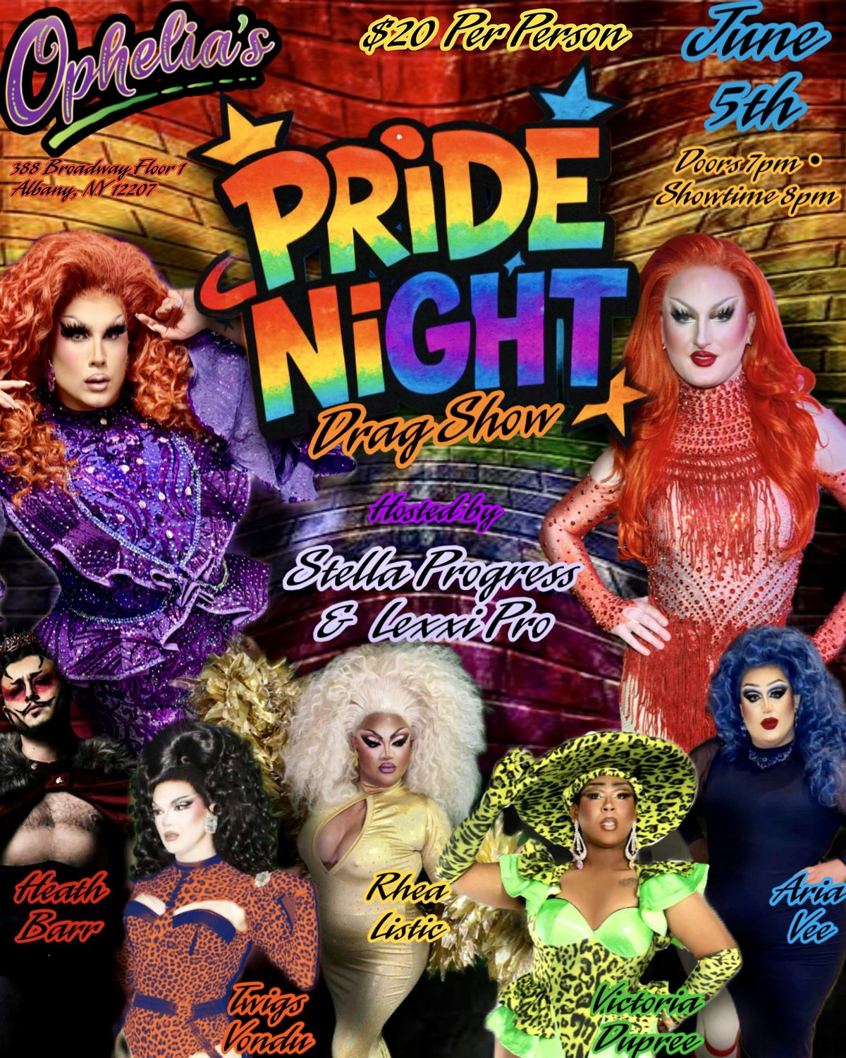 Join us for a fabulous PRIDE NIGHT drag show full of laughs, lip-syncs, & mimosas! Joining Lexxi Pro and Stella Progress is a fabulously hot cast including Twigs Vondu, Heath Barr, Rhea Listic, Aria Vee and Victoria Dupree. Music by DJ RickRicki and full bar and Slidin' Dirty menu available for purchase.