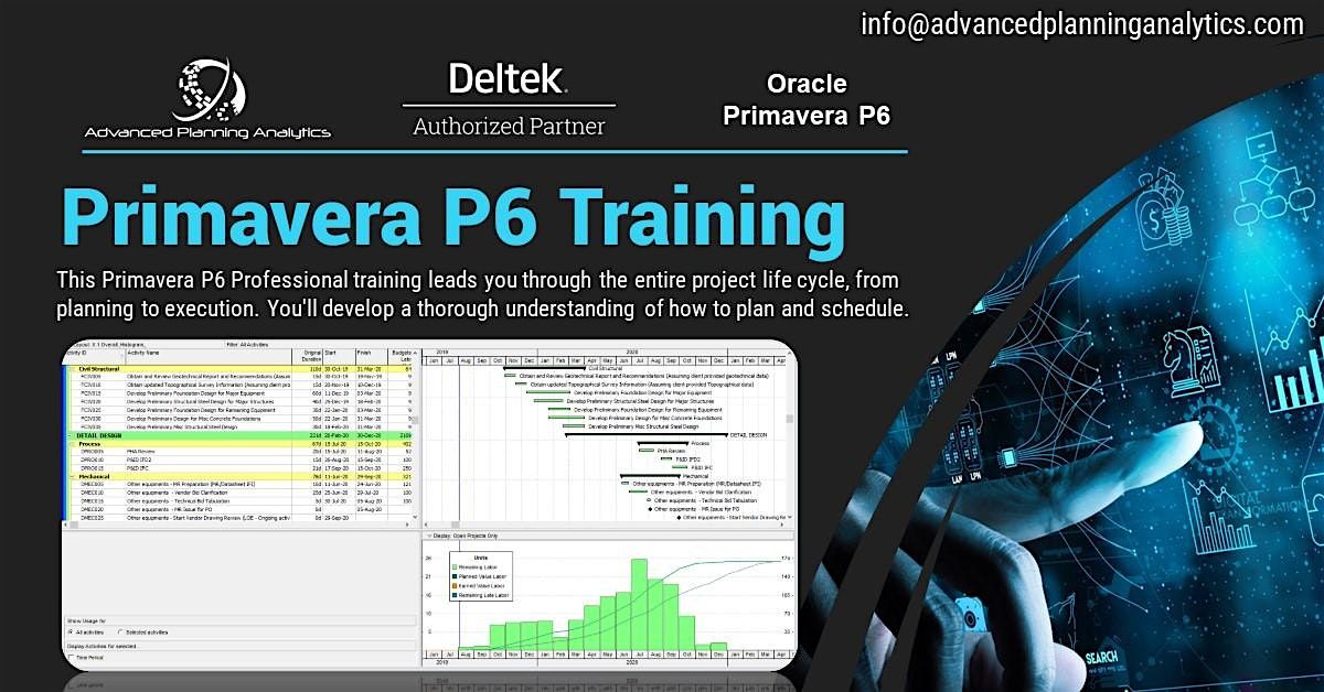 This Primavera P6 Professional training leads you through the entire project life cycle, from planning to execution. You'll develop a thorough understanding of how to plan and schedule.