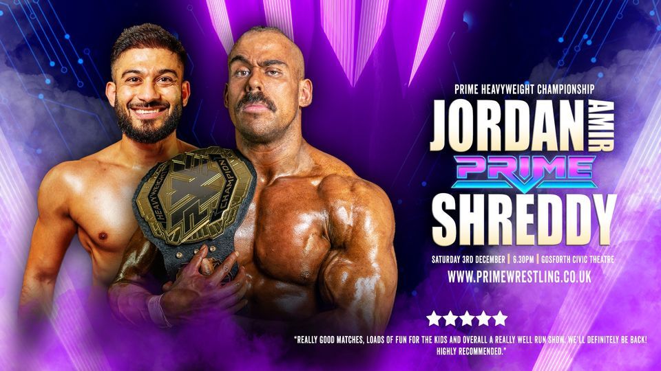 PRIME WRESTLING IS BACK AND BIGGER THaN EVER!!JOIN US FOR A NIGHT OF LIVE WRESTLING ACTION FEATURING FORMER WWE NXT:UK SUPERSTAR AMIR JORDAN AS HE CHALLENGES CURRENT PRIME CHAMPION SHREDDY.