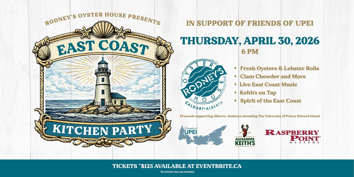 Pull up a chair and join the Friends of UPEI for a true East Coast Kitchen Party at Rodney’s Oyster House, Calgary—where great food, live music, and East Coast hospitality take centre stage.