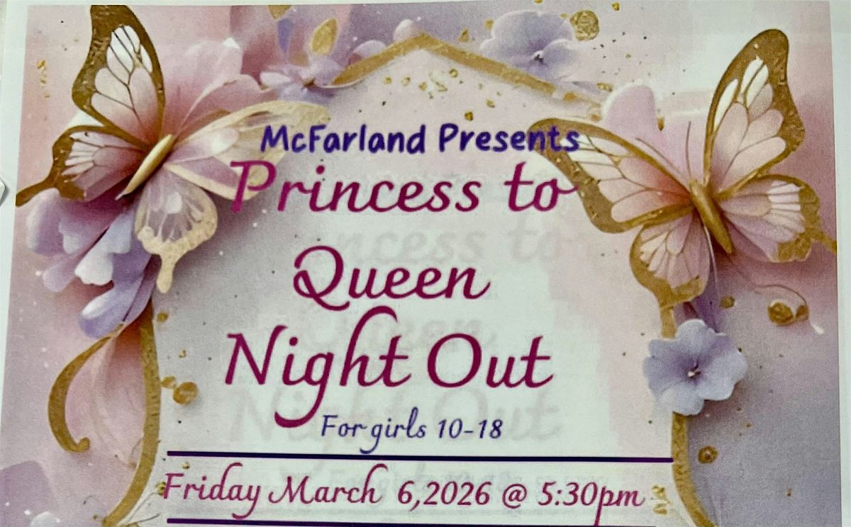 Join us for a fun and casual evening at the McFarland Community Center! 901-636-0787 On March 6, 2026 at 5:30 PM (Central Time), come hang out, relax, and enjoy a night dedicated to celebrating your inner royalty. Whether you're coming with friends or flying solo, it's the perfect chance to unwind and feel like a queen for the night. Don't miss out on this awesome night out!