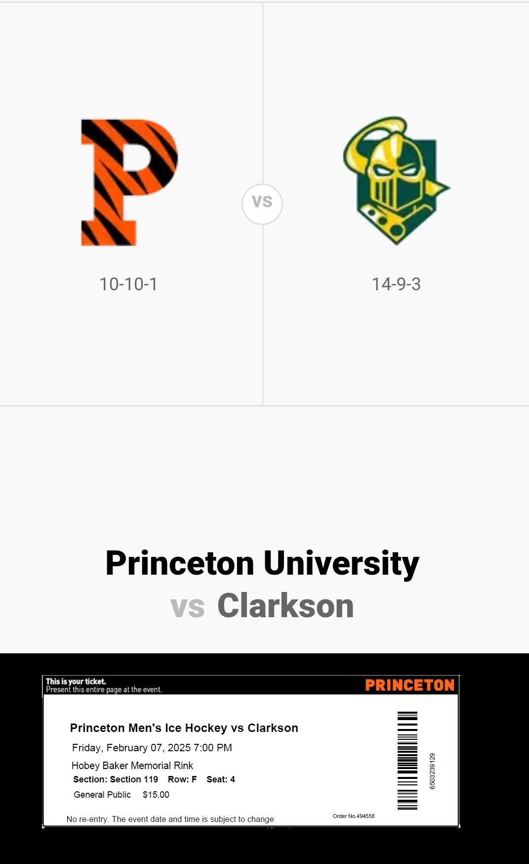 Princeton Tigers at Clarkson Golden Knights Mens Hockey at Cheel Arena