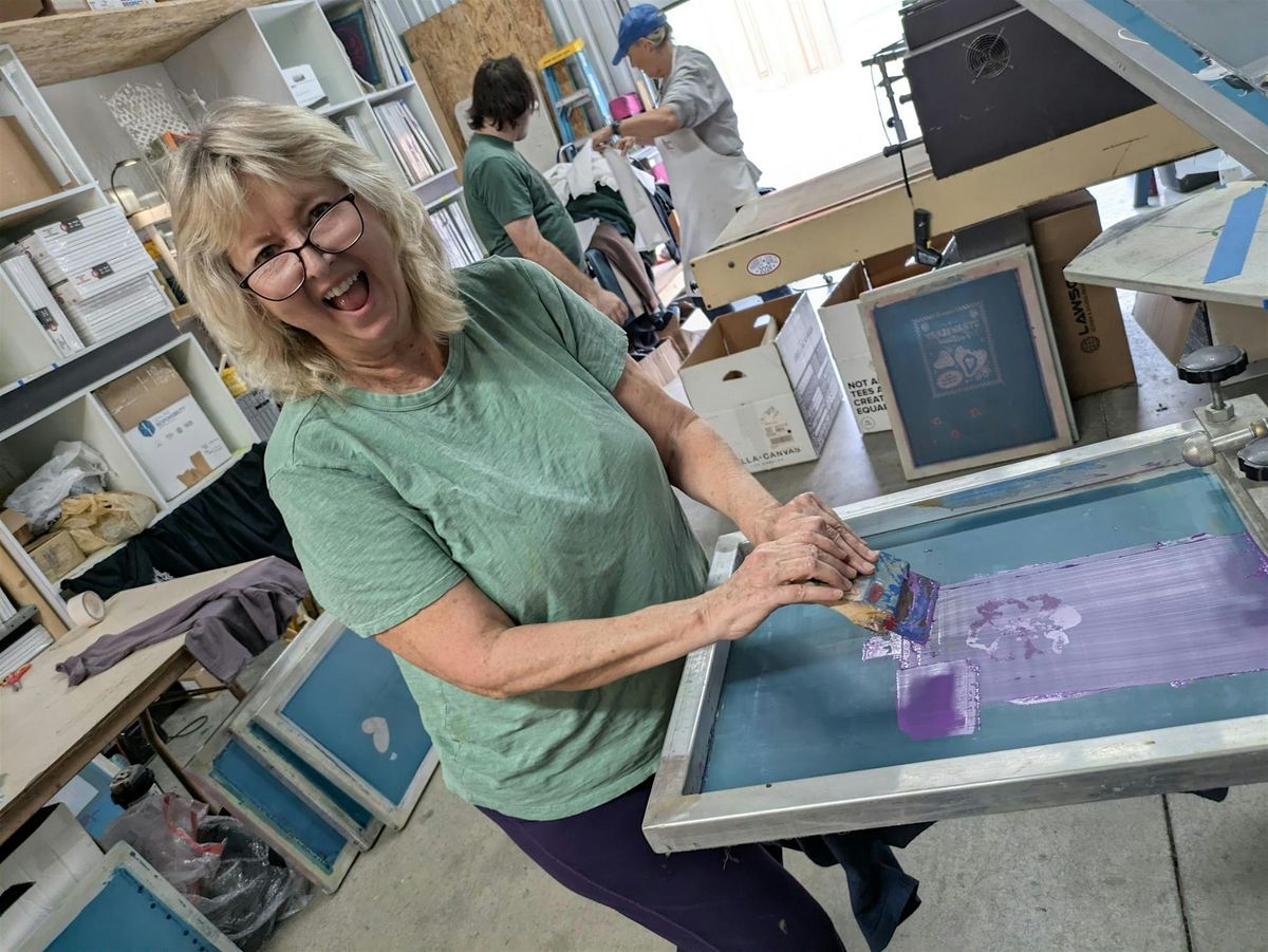 Workshops take place inside our working screen print studio with professional equipment, natural light, and plenty of room to move around.