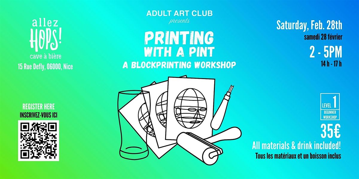 Printing with a Pint: A Blockprinting Workshop at Allez Hops! (Nice, FR)
