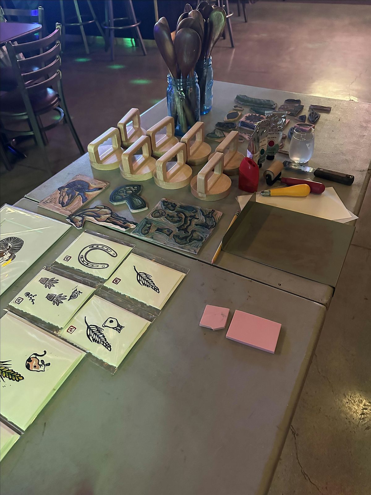 Join us for an evening of printmaking! Learn basic relief printmaking skills and print your new block onto cards.