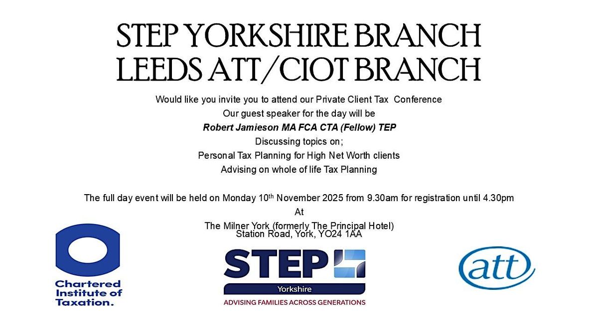 STEP Yorkshire and ATT/CIOT Leeds Branch are delighted to invite you to our jointly held tax conference in York.