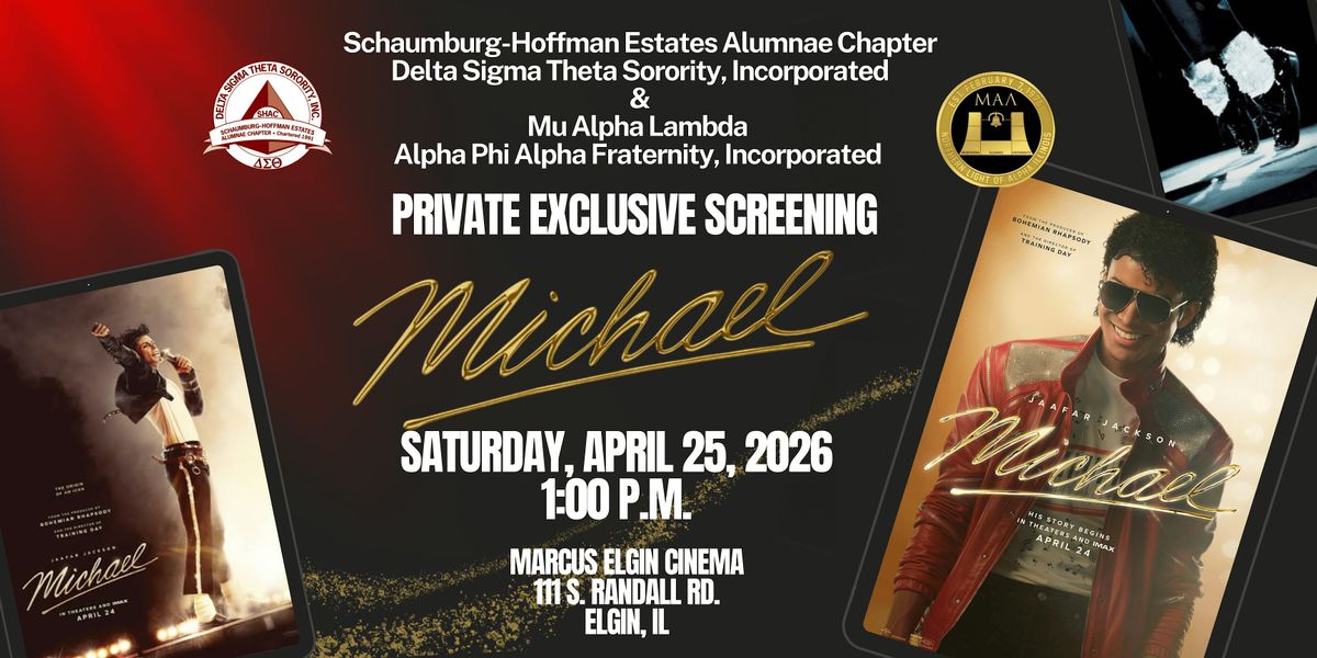 Join the Schaumburg-Hoffman Estates Alumnae Chapter of Delta Sigma Theta Sorority, Incorporated and the Mu Alpha Lambda Chapter of Alpha Phi Alpha Fraternity, Incorporated for an exclusive showing of the new biopic "Michael" starring Jafar Jackson.