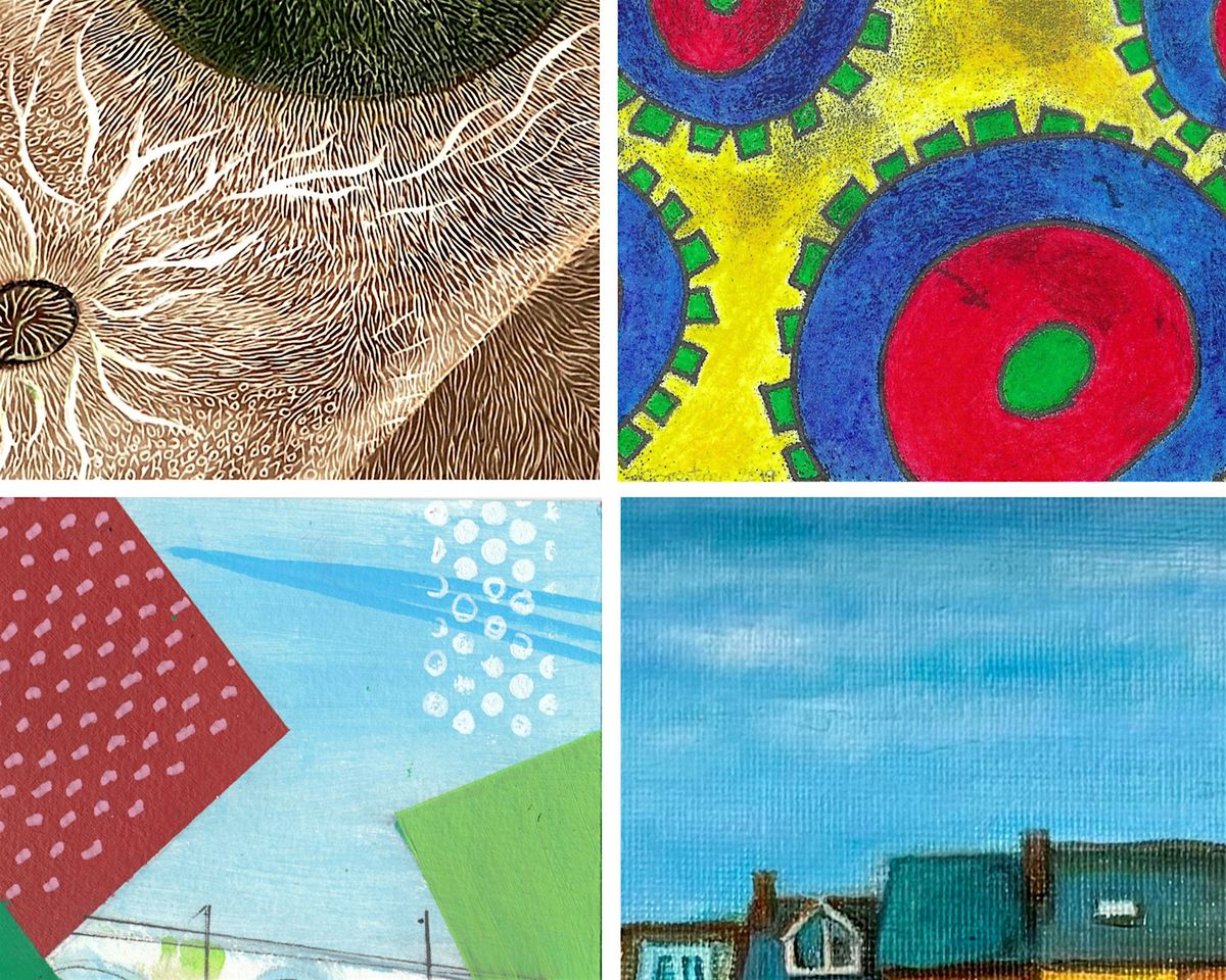 'Postcards 2026' is a group exhibition featuring over 50 artists and over 100 individual works of art across a variety of artistic styles and disciplines. There is no theme to this show, other than work has to be postcard (A6) sized. This is a small-scale celebration of the UK art scene.