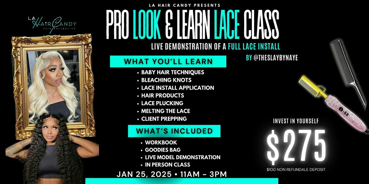 Take your lace skills to the next level with a look & learn experience designed for stylists, braiders, wig makers, and beginners who want professional, natural-looking results. This class gives you clear, step-by-step instruction so you can confidently create flawless melts and polished installs your clients will love.