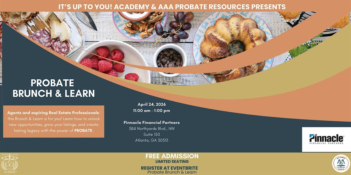 Join us on Friday, April 24, 2026, from 11:00 am to 1:00 pm at Pinnacle Financial Partners in Atlanta, GA, for this informative and inspiring event. Enjoy a delicious brunch while learning how to build generational wealth, secure listings, and position yourself as a probate expert in your market.