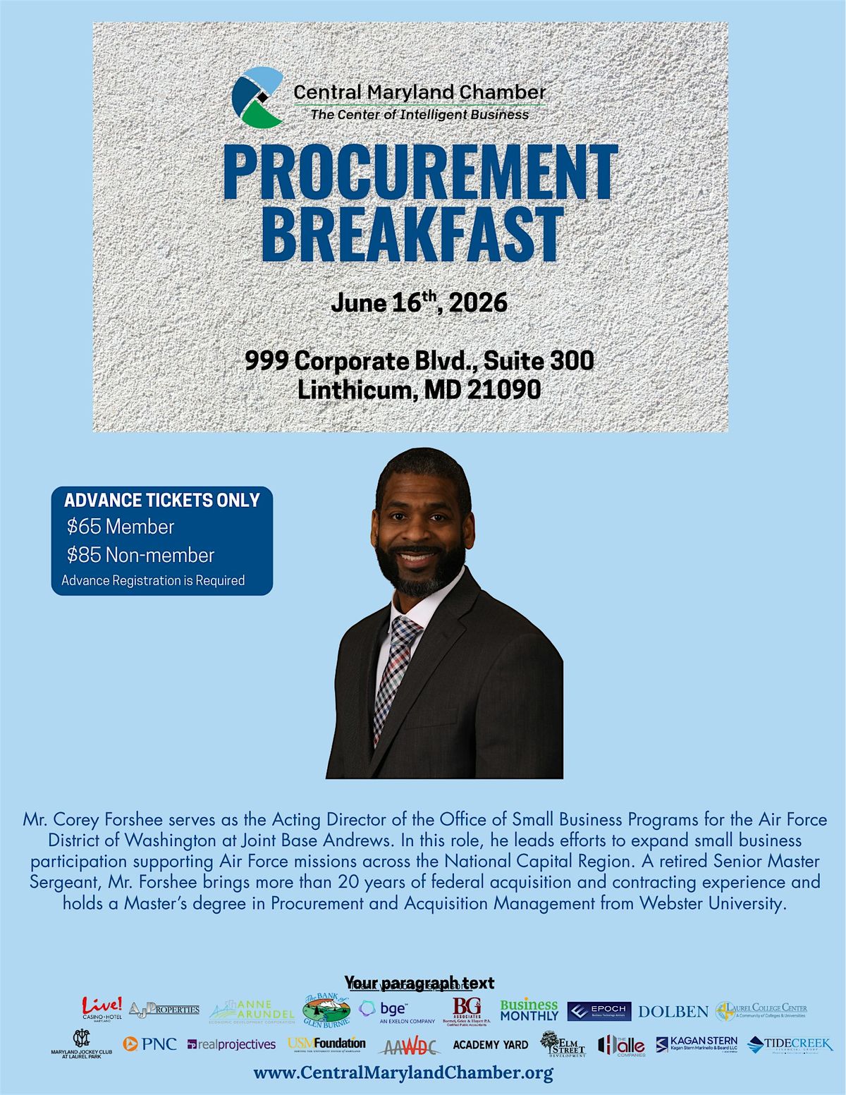 Join us for an engaging and informative Procurement Breakfast designed to help you navigate opportunities with a major military agency and gain valuable insights from industry experts.