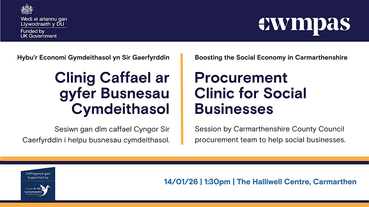 Carmarthenshire County Council spends approximately £440 million each year on goods, works and services. This Procurement Clinic is designed to help social businesses and social enterprises better understand how to access, navigate and succeed in the Council’s procurement processes.