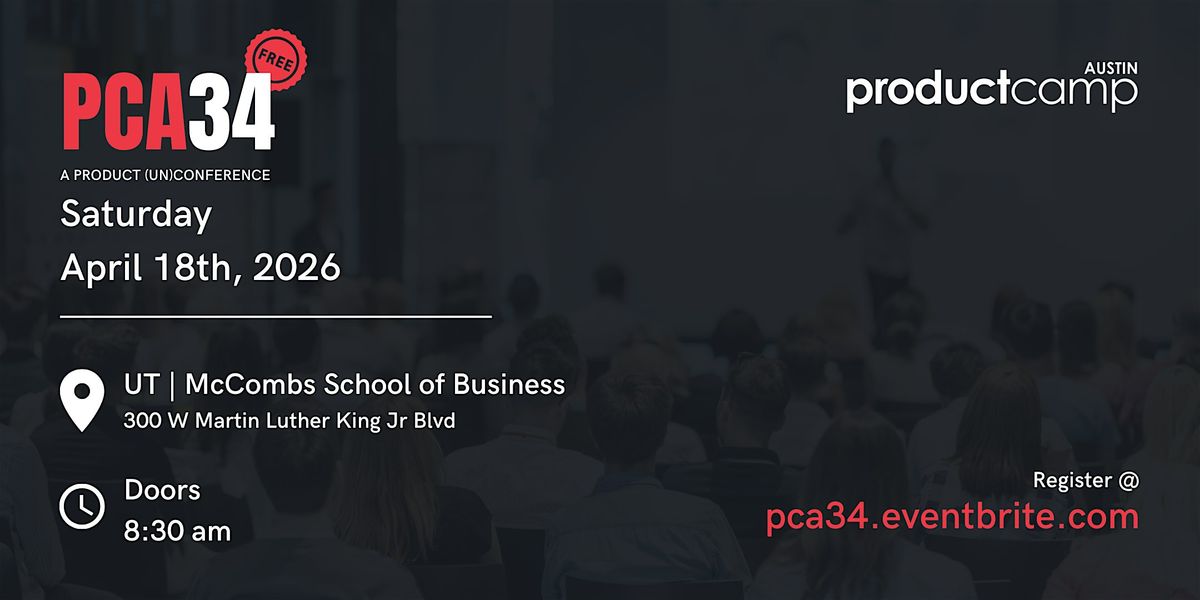 Join hundreds of product managers, designers, marketers, founders, and builders for PCA34, Austin’s 34th ProductCamp (Un)Conference.