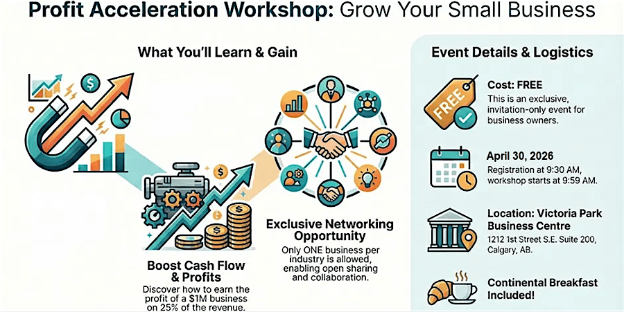 Join us on April 30, 2026 at 9:30 AM (Mountain Time) for a hands-on session designed to boost your profits fast. We'll meet in person at 1212 1st St SE suite 200. Whether you're looking to sharpen your business skills or pick up new strategies, this workshop is the place to be. Don’t miss out on an easy-going, practical event to help you grow your success!
