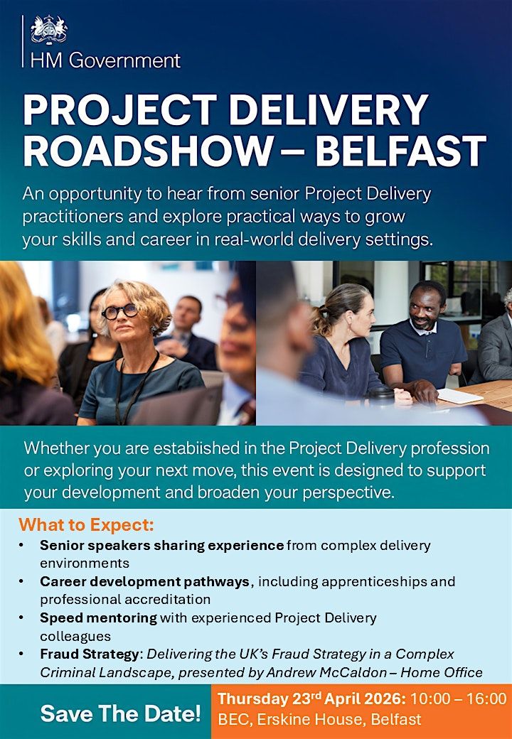 The Project Delivery Roadshow – Belfast is an opportunity for colleagues across Northern Ireland to hear directly from experienced Project Delivery professionals and explore how successful delivery happens in complex, real‑world environments.