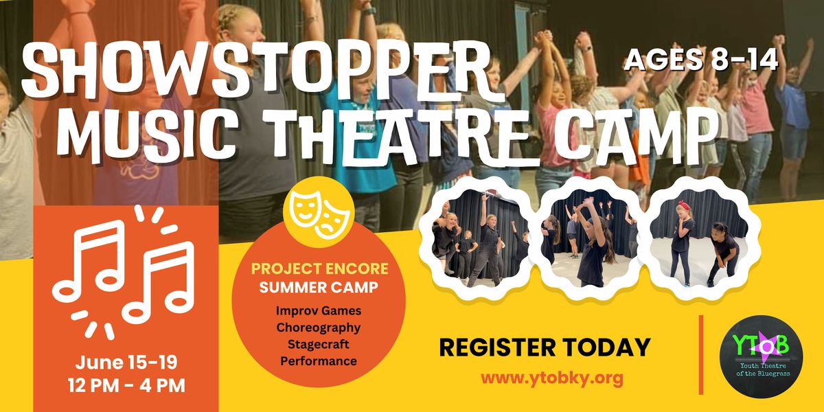 Youth Theatre of the Bluegrass is excited to present the 2026 Project Encore SHOWSTOPPERS Music Theatre Summer Camp where kids will be immersed in singing, dancing and acting! Students will learn the basics of auditioning, production elements and performing in a music theatre showcase for families and friends!