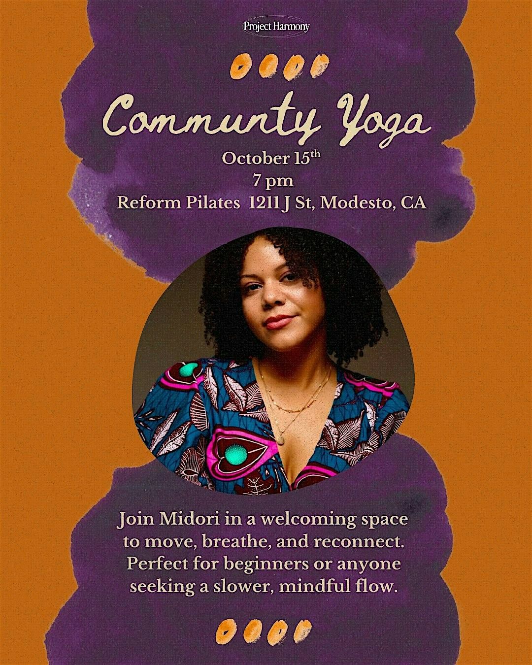 Join us for a gentle community yoga class at Reform Pilates in Modesto, led by Midori Drane. This welcoming session is designed to bring our community together through the practice of gentle yoga, suitable for all levels and abilities. Come as you are and experience the benefits of mindful movement, breathing, and relaxation in a supportive, inclusive environment. Whether you're new to yoga or returning to your practice, this class offers a peaceful space to connect with yourself and others in our community