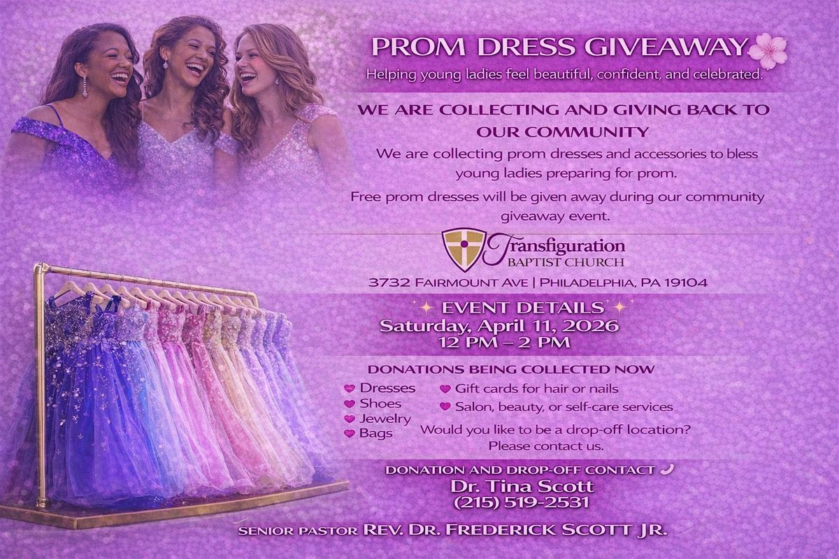 Transfiguration Baptist Church is honored to host our Community Prom Dress Giveaway, created to help young ladies feel beautiful, confident, and celebrated as they prepare for prom.