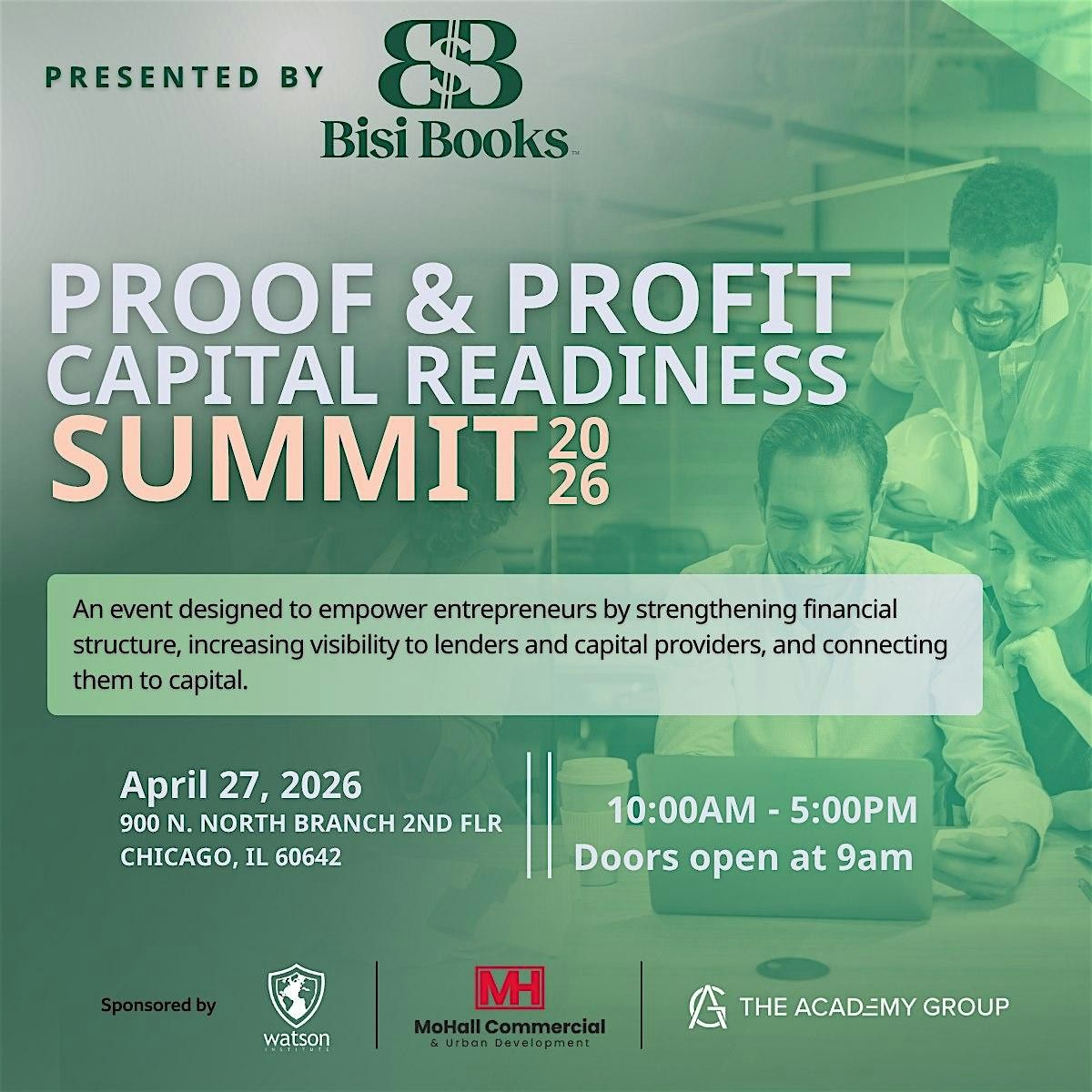 Proof & Profit is a national capital readiness summit for revenue-generating founders, financial institutions, and ecosystem leaders. Hosted by Bisi Books®, the event focuses on one critical issue: many companies have revenue, but not the financial structure or proof institutions need to evaluate them for capital. Through main stage conversations, practical breakout sessions, and cross-sector networking, the summit is designed to move attendees from activity to readiness to capital.
