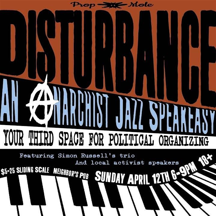 If you feel angry about the world and don’t know how to get involved, if you want to connect with likeminded activists, or if you want a space to find a shared passion for justice, Proposition Mole introduces a third space for political organizers. Disturbance: An Anarchist Jazz Speakeasy coming to the Neighbor’s Pub on Sunday April 12th with a live jazz band and local activist speakers!