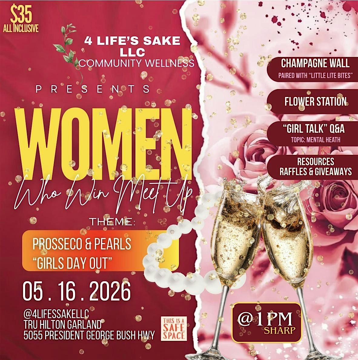 Join 4 Life’s Sake LLC for an elevated “Prosecco & Pearls: Girls Day Out” experience designed to pour into women from every walk of life.